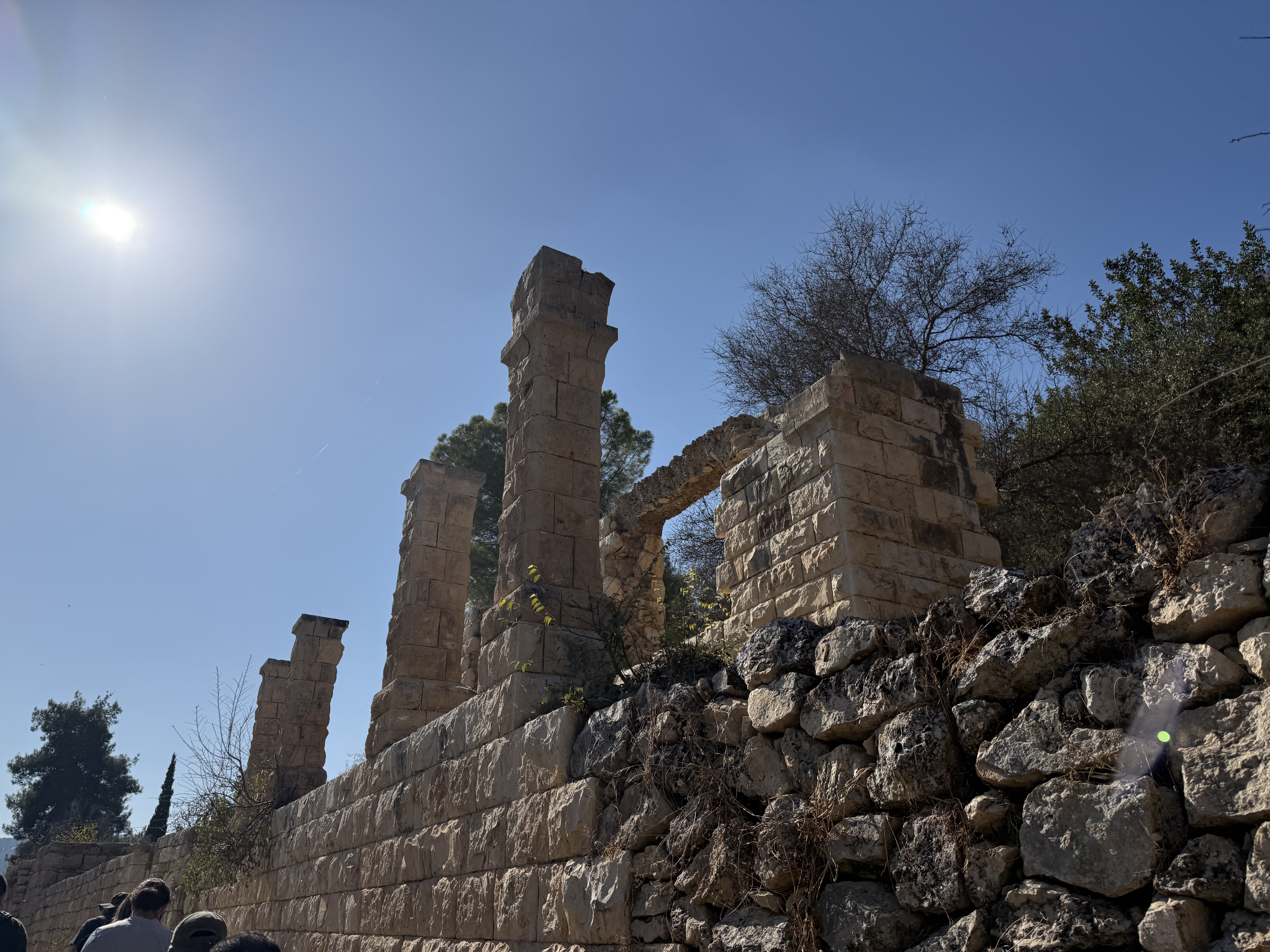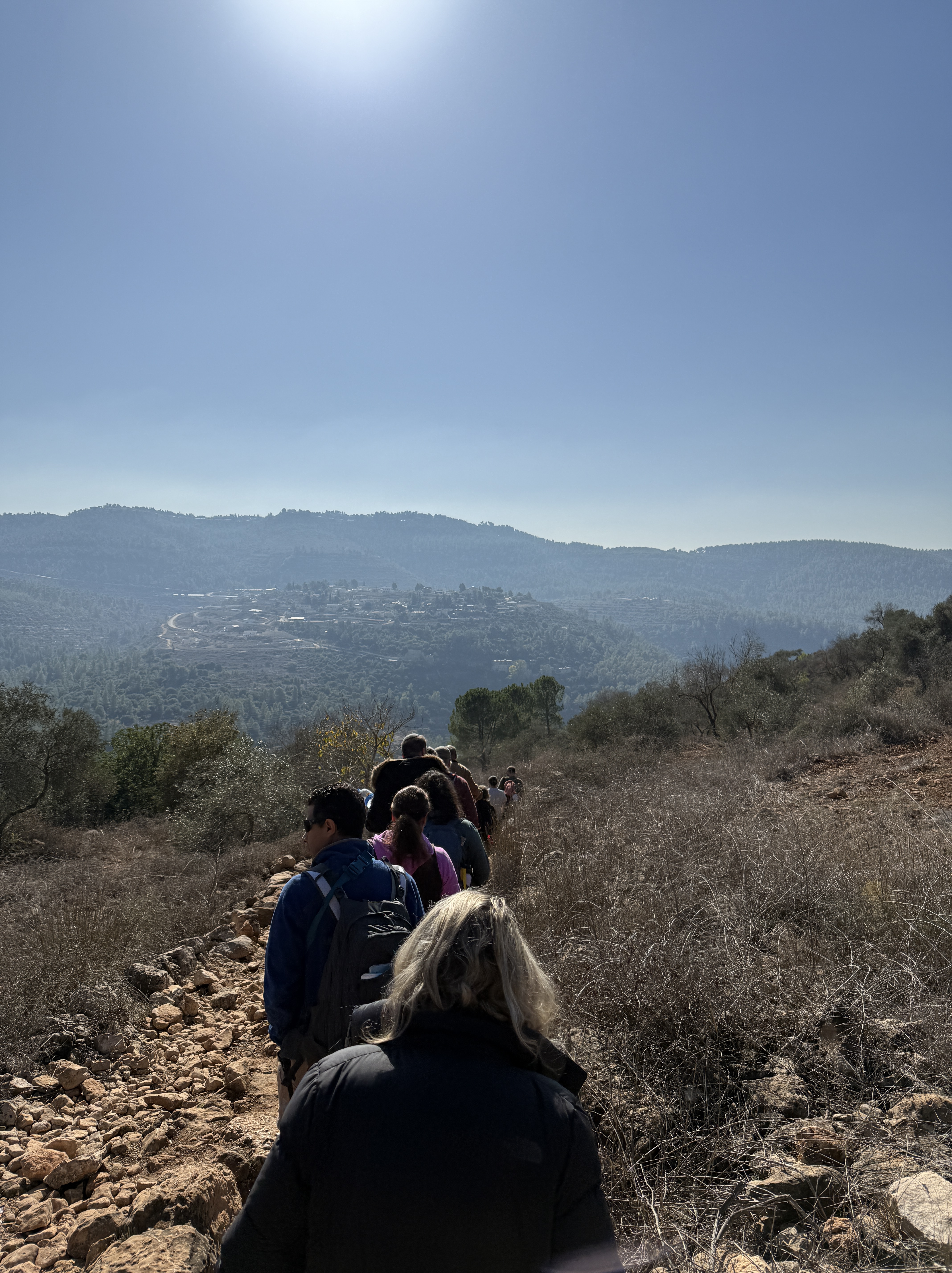 Today we went on our first tour. We set off to Bible Hill located near First Station in Jerusalem. After that we traveled to the Sataf Hiking Trail and hiked the Ein Kerem path down from the top of this ancient site, which included terraced agriculture and springs. It wasn’t a difficult hike, but you needed stamina to walk down hill and down so many steps and rocks.